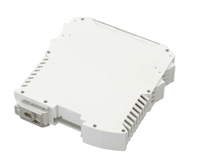 Signal conditioning housing. Designed for precision electronics. Features excellent isolation properties and a compact form factor.