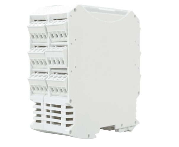 Power module enclosure. Engineered for small power supply units. Features ventilation slots and a secure rail mount.