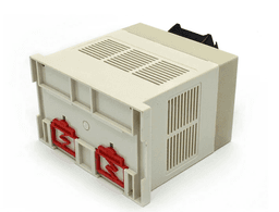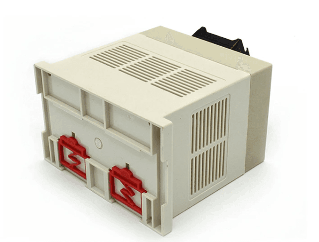 Large capacity equipment case (145x130x90mm). This substantial enclosure is built for comprehensive industrial controllers requiring multiple PCB layers. It features heavy-duty rail clips and extensive ventilation for high-power applications.