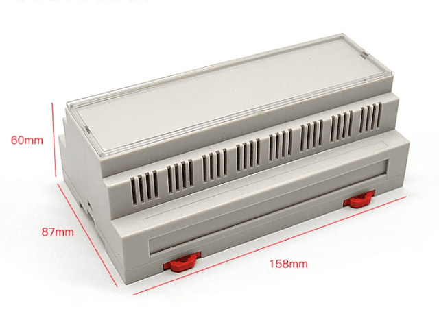 Specialized sensor case (approx. 123x68x50mm). Engineered for environmental monitoring devices. Features a weather-resistant design and mounting provisions for external probes or antennas.