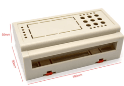 High-wattage power enclosure (160x95x55mm). Designed for power supplies and amplifiers, this housing includes extensive ventilation slots for maximum airflow. The robust construction supports heavy internal components.