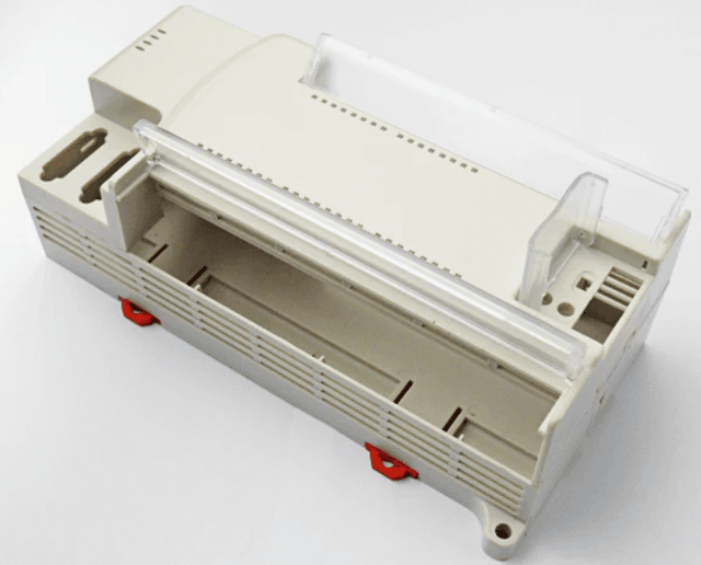 Elongated automation housing (200x90x70mm) for multi-module systems. This extensive enclosure is capable of housing complex motherboard/daughterboard configurations. Ideal for central processing units in industrial machinery.