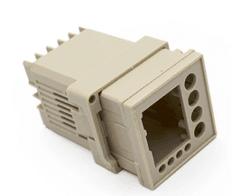 Vertical tower housing (48x48x85mm) designed for sensor amplifiers and relays. The tall, narrow form factor promotes natural convection cooling. Includes multiple PCB slot positions to accommodate various component heights and connector orientations.
