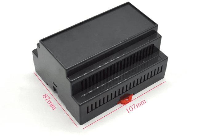 Low-profile electronics case (88x55x44mm) designed for compact switchgear cabinets. The reduced height allows for installation in shallow distribution boards. Features a rugged ABS body with integrated wire management slots and vibration-resistant rail clips.