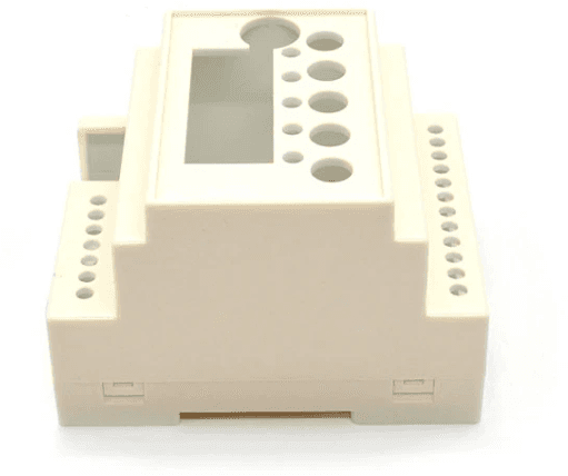 Wide-body PLC case (93x72x59mm) offering extended internal volume. This housing bridges the gap between standard and large automation enclosures. It supports complex terminal block arrangements and features a durable snap-lock assembly.
