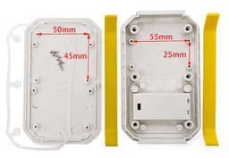 IP65 Waterproof handheld enclosure (126x80x20mm) with sealed battery compartment. Features a gasketed battery lid (typically for AAA cells) allowing for field power changes while maintaining water resistance. Ideal for marine or outdoor instruments.
