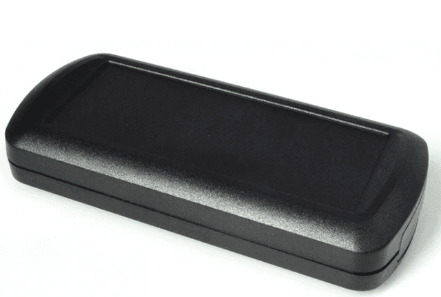 Compact remote control case (130x60x26mm). A shorter version of the standard remote housing, ideal for air conditioner or fan controllers. The ergonomic curvature fits naturally in the palm, with internal ribbing for structural rigidity.