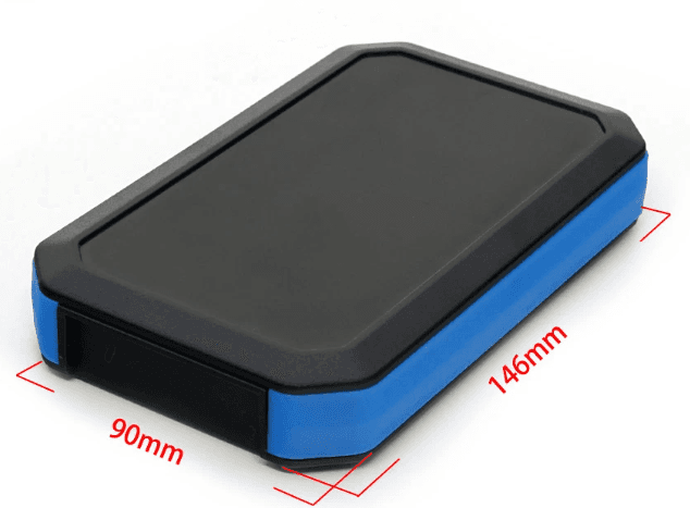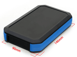 Medium IP65 Waterproof case (146x90x25mm) with sealed battery access. Includes a gasketed rear hatch for battery replacement (typically 3xAAA). Combines heavy-duty environmental protection with portable utility.
