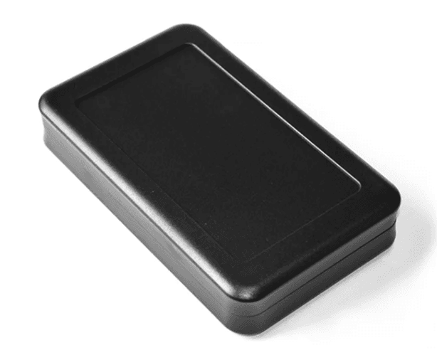 Robust portable instrument case (155x95x29mm) featuring a streamlined, modern aesthetic. The enclosure is engineered for medical or test equipment, providing ample internal volume for mainboards and sensor modules while maintaining a comfortable grip profile.
