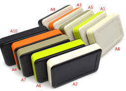 Large-format handheld console (159x99x32mm) designed for complex field instruments. The wide faceplate supports larger graphic displays or extensive keypad matrices. Includes a heavy-duty battery access panel and reinforced screw towers for rugged durability.