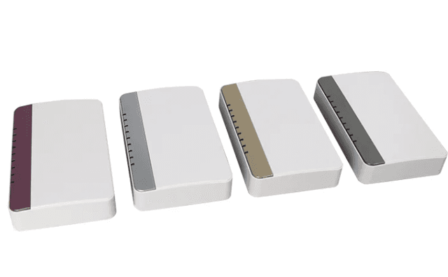 Rectangular AP case (160x100x30mm). A classic shape for ceiling or wall-mounted access points. Features a professional matte white finish.