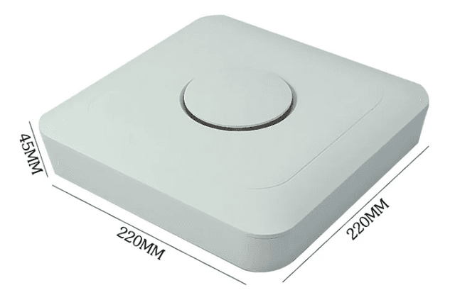 Large round AP housing (220x220x45mm). A massive circular enclosure for high-density public WiFi access points. The shape deters dust accumulation and looks professional on ceilings.