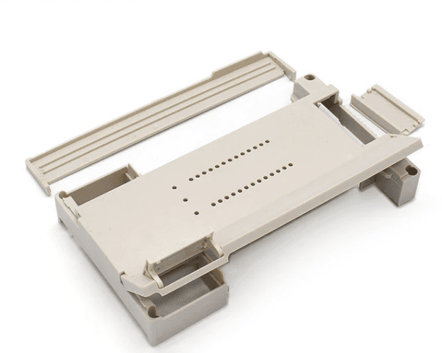 Flat-panel rail enclosure (168x115x40mm). A large surface area box with a slim 40mm profile. Perfect for mounting behind display panels or in shallow cabinets.