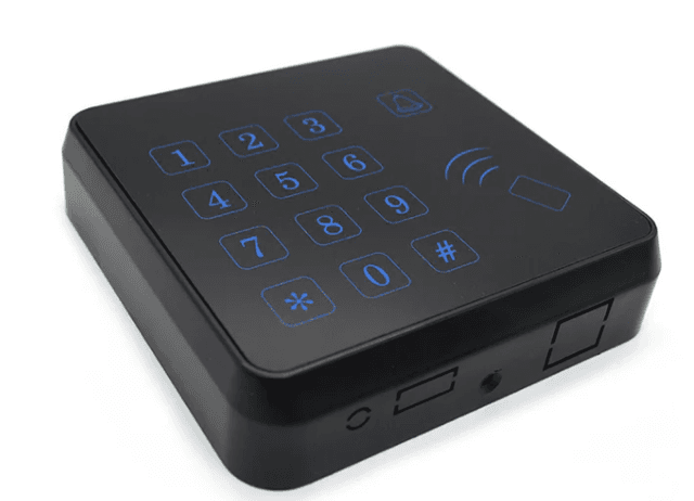 Square junction box (105x105x25mm). A slim square enclosure for wiring junctions or mounting large "push-to-exit" pads.