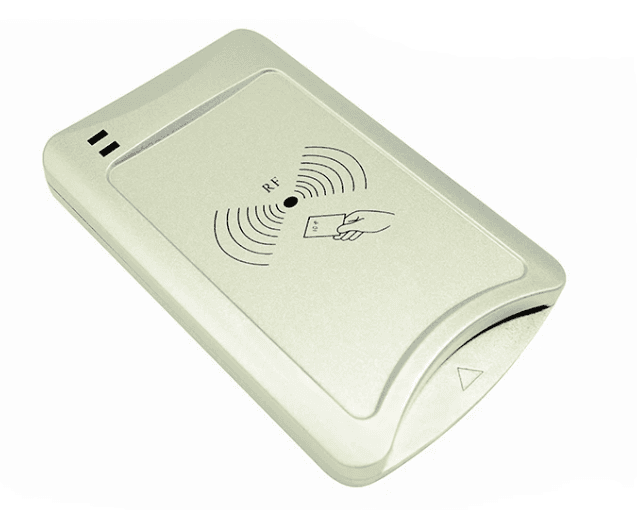 Flat access terminal (118x75x17mm). A sleek, modern enclosure with a flat front face. The 17mm depth is perfect for surface mounting on glass or metal frames.