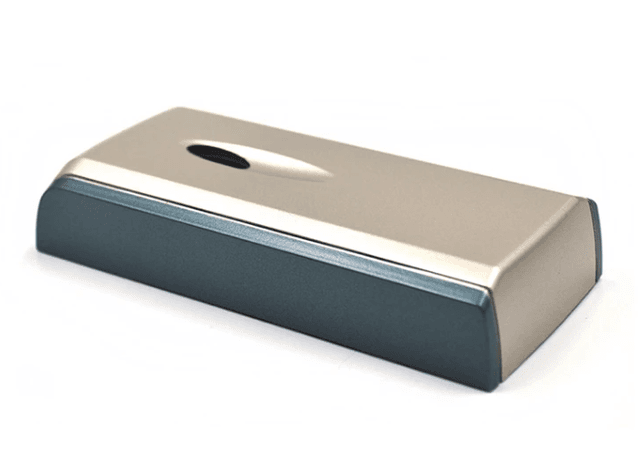 Narrow elongated housing (123x55x22mm). A specialized shape for long, thin PCBs. Can be used for mullion mounting or hand-held remote applications.