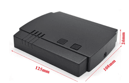 Landscape display housing (125x108x24mm). Optimized for landscape-oriented screens. The thin 24mm profile ensures it does not protrude excessively from the wall.