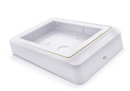 Beveled landscape reader (130x87x25mm). Features a landscape orientation with stylized edges. Suitable for premium office door signage with integrated access.