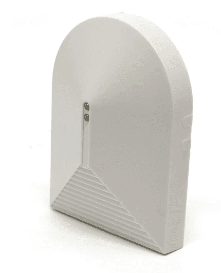Vertical sensor case. Designed for wall-mounted environmental or security sensors. Features vented or grilled sections.