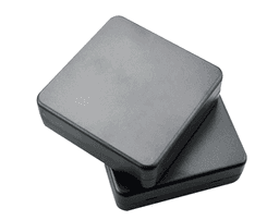 Mid-size square enclosure (62x62x20mm). A perfect square housing for balanced circuit layouts. Features sturdy construction and reliable lid retention.