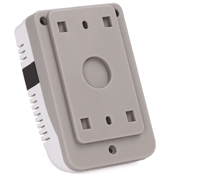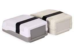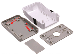 Mid-sized wall mounting enclosure measuring 110x70x38mm. This robust housing features integrated external mounting flanges ("ears"), allowing for secure surface installation without breaching the sealed electronics compartment. Manufactured from high-impact ABS thermoplastic, it includes internal screw bosses for PCB fixation and a secure 4-screw lid assembly. Ideal for industrial control modules and access control interfaces.