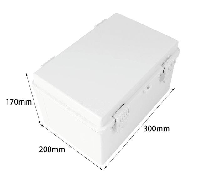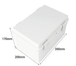 Fabricated with 300x200x170mm dimensions, this opaque hinged enclosure provides a 170mm vertical clearance for deep-profile electronic modules. The high-rigidity ABS construction is optimized for outdoor power distribution, offering exceptional mechanical impact resistance (IK08) and corrosion protection.