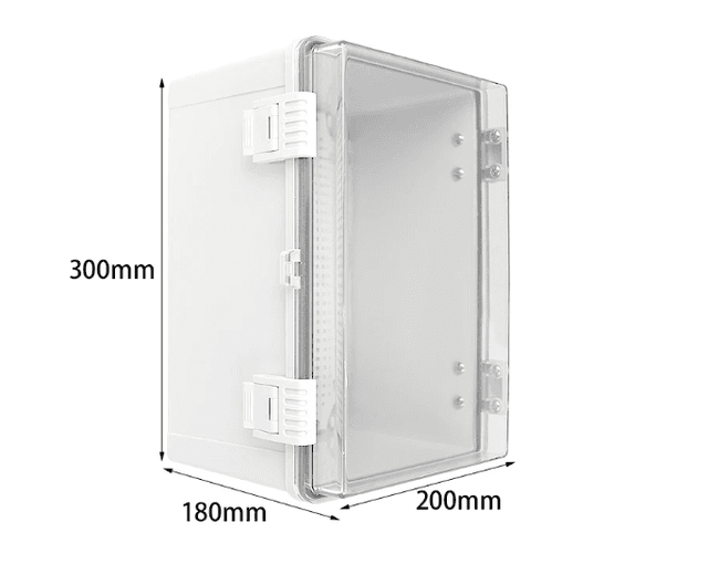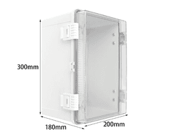 Measuring 300x200x180mm, this industrial housing utilizes a transparent hinged PC cover for easy oversight of internal LED indicators or circuit breakers. The IP67-rated construction is engineered for durability in maritime and coastal zones, resisting salt spray and thermal degradation.