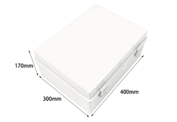 Designed for mid-to-large scale applications, this 400x300x170mm ABS enclosure features an opaque hinged cover for professional-grade electrical isolation. The IP67-rated construction and reinforced base are optimized for housing industrial-grade power supplies and automation modules.