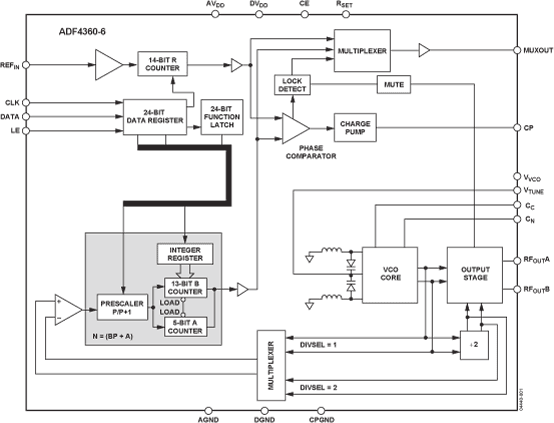 Integrated Integer-N Synthesizer and VCO - Output Frequency 1050 to 1250