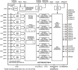 8-Channel, 24-Bit, Simultaneous Sampling ADC, Power Scaling, 110.8 kHz BW