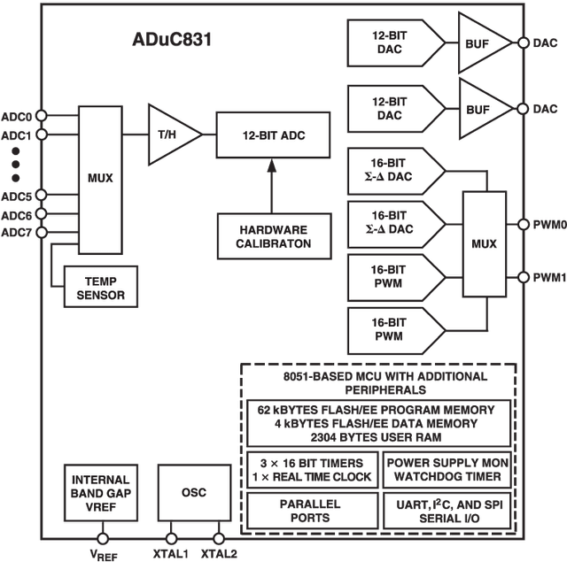 MicroConverter, 12-Bit ADCs and DACs with Embedded 62 kBytes Flash MCU