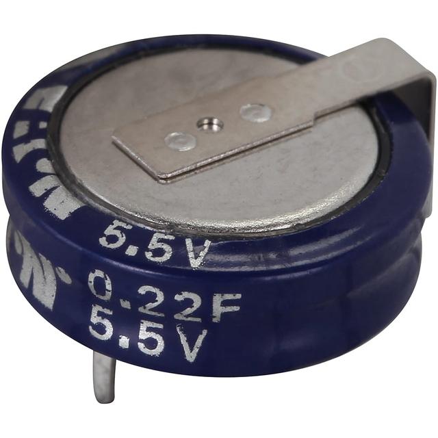 Cap Supercap 0.22F 5.5V -20% to 80% Radial Stacked Coin 10mm 75 Ohm 1000h PowerStor 70 C Bulk