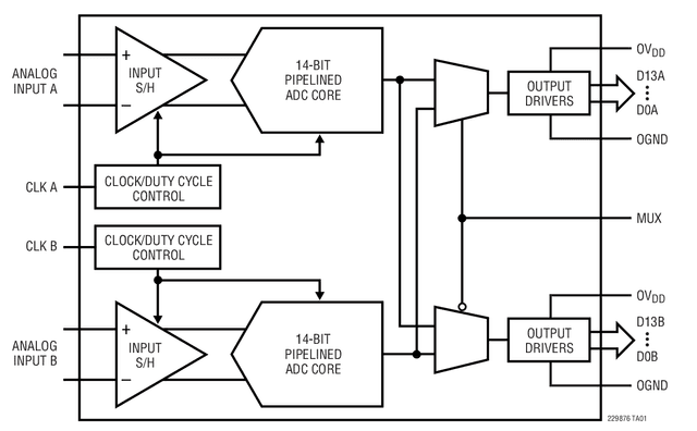 ADC, Proprietary Method, 14-Bit, 2 Func, 1 Channel, Parallel, Word Access, CMOS, PQCC64