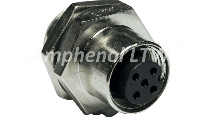 Sensor Connector, 5 Pole, M12, Receptacle, M Series, M12, Female, 5 Positions, Solder Socket