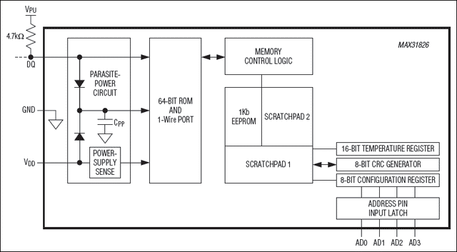 Board Mount Temperature Sensors 1-WireB. Digital Temperature Sensor with 1Kbit Lockable EEPROM