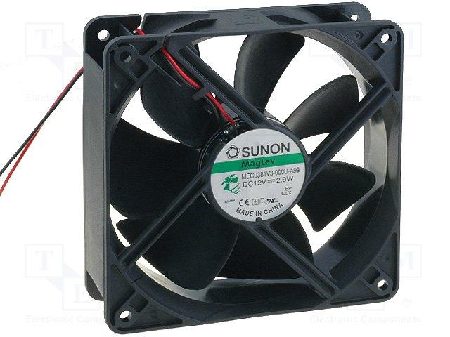 DC Fans Axial Fan, 120x120x38mm, 12VDC, 93CFM, 0.18H2O, Vapo, Wire, Auto Restart