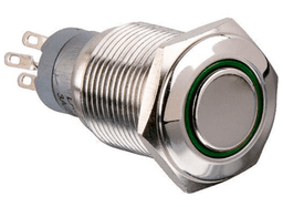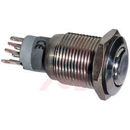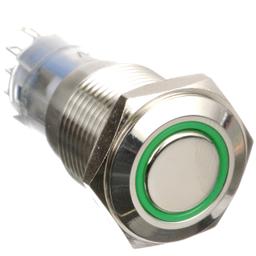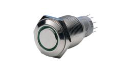 BULGIN MP0045/1D2GN012 Illuminated Pushbutton Switch, DPDT, Off-(On), 3 A, 250 V, Green