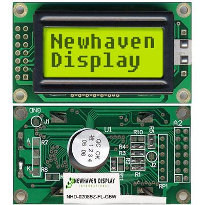 Character Display Modules LCD NHD 2x8 STN Gray Transflective 8-Bit Parallel | Newhaven Display International NHD-0208BZ-FL-GBW