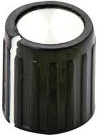 Knob Ribbed .125 in Shaft Black White Indicator Spun Aluminum Inlay Top 4.40 Set Screw
