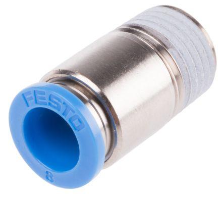 Push-in Connector, 1 Port R 1/4 Thread & 1 Port 8mm OD tube, Blue ring | Festo QS-1/4-8-I