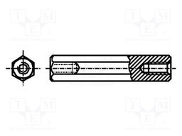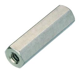 M2.5 Threaded Hexagonal Brass Spacer, 5mm A/F, 10mm body length, Nickel finish