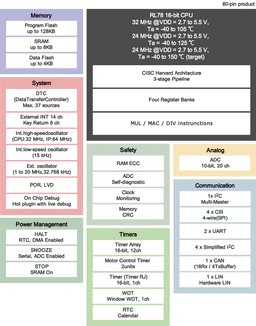 MCU 16-bit RL78 CISC 128KB Flash 3.3V/5V Automotive 30-Pin LSSOP