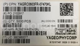 Res Thick Film 0603 470K Ohm 1% 0.1W(1/10W) 100ppm/C Pad SMD T/R