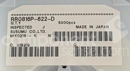 Fixed Resistor, Thin Film, 0.0625W, 6200ohm, 75V, 0.5% +/-Tol, 25ppm/Cel, Surface Mount, 0603
