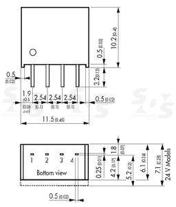 1 Watt DC/DC converter, industrial, 10% input, unregulated, encapsulated, SIP-4 package