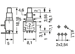 Switch Push Button OFF Mom SPST Short Round Plunger 20VAC 20VDC 0.4VA Momentary Contact PC Pins Thru-Hole