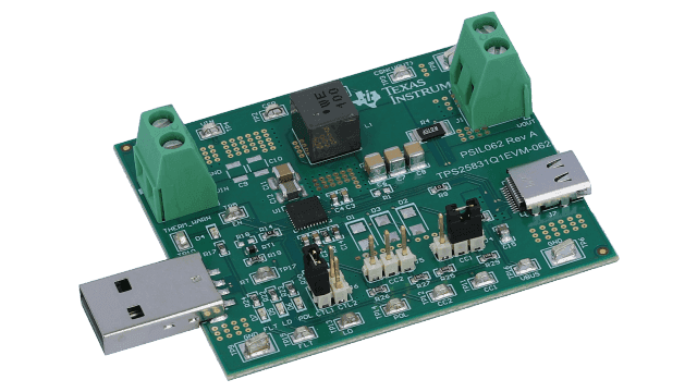 TPS25831-Q1 USB Type-C and BC1.2 Synchronous Buck EVM with cable compensation and current limit