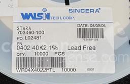 Res Thick Film 0402 40.2K Ohm 1% 0.063W(1/16W) 100ppm/C Molded SMD Paper T/R