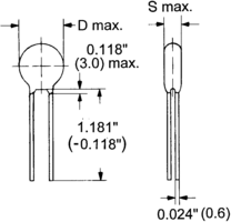 Ceramic Capacitor, Ceramic, 20% +Tol, 20% -Tol, Y5U, -56/+22% TC, 0.0015uF, Through Hole Mount
